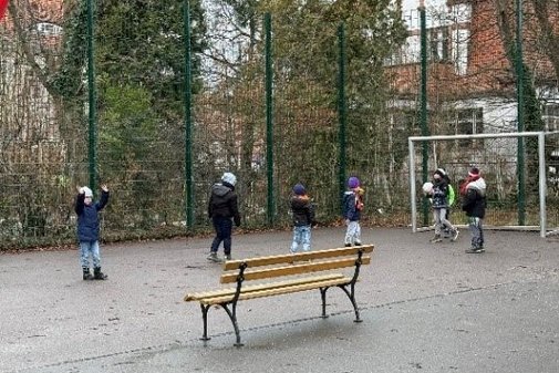 Für sportliche Aktivitäten kann die Turnhalle der Peter-Apian-Oberschule genutzt werden, welche auf der gegenüberliegenden Straßenseite liegt sowie das großzügige Außengelände. Hier gibt es ausreichend Platz zum Toben und Bewegen. Mehrere Bänke laden zum Entspannen und Verweilen ein. So kann jedes Kind seinen individuellen Bedürfnissen nachkommen. Im Sommer wird der Hof gern zur Abkühlung unter dem Rasensprinkler genutzt.